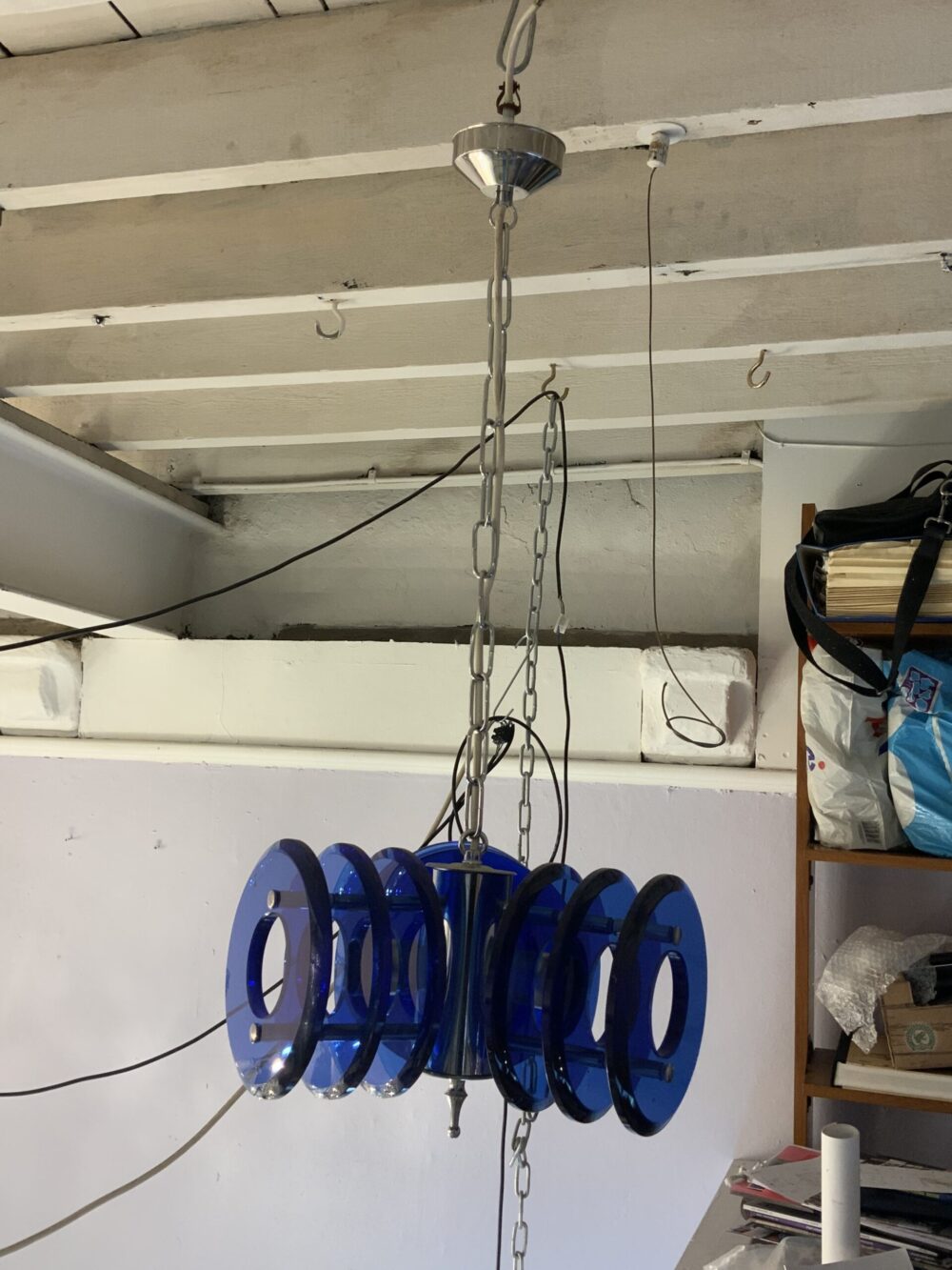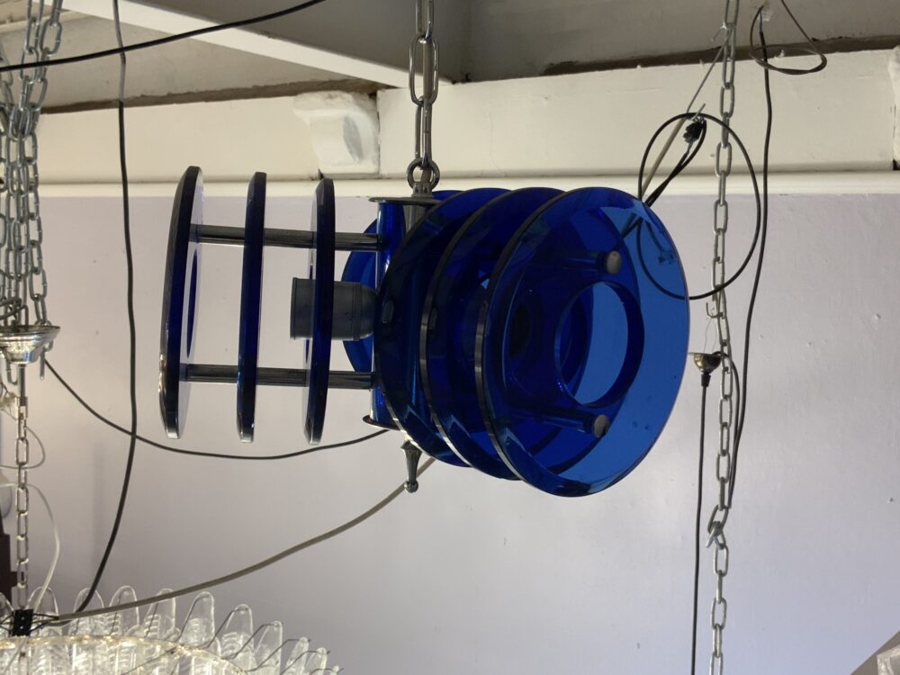 Italian 1950’s blu glass chandelier by Fontana Arte