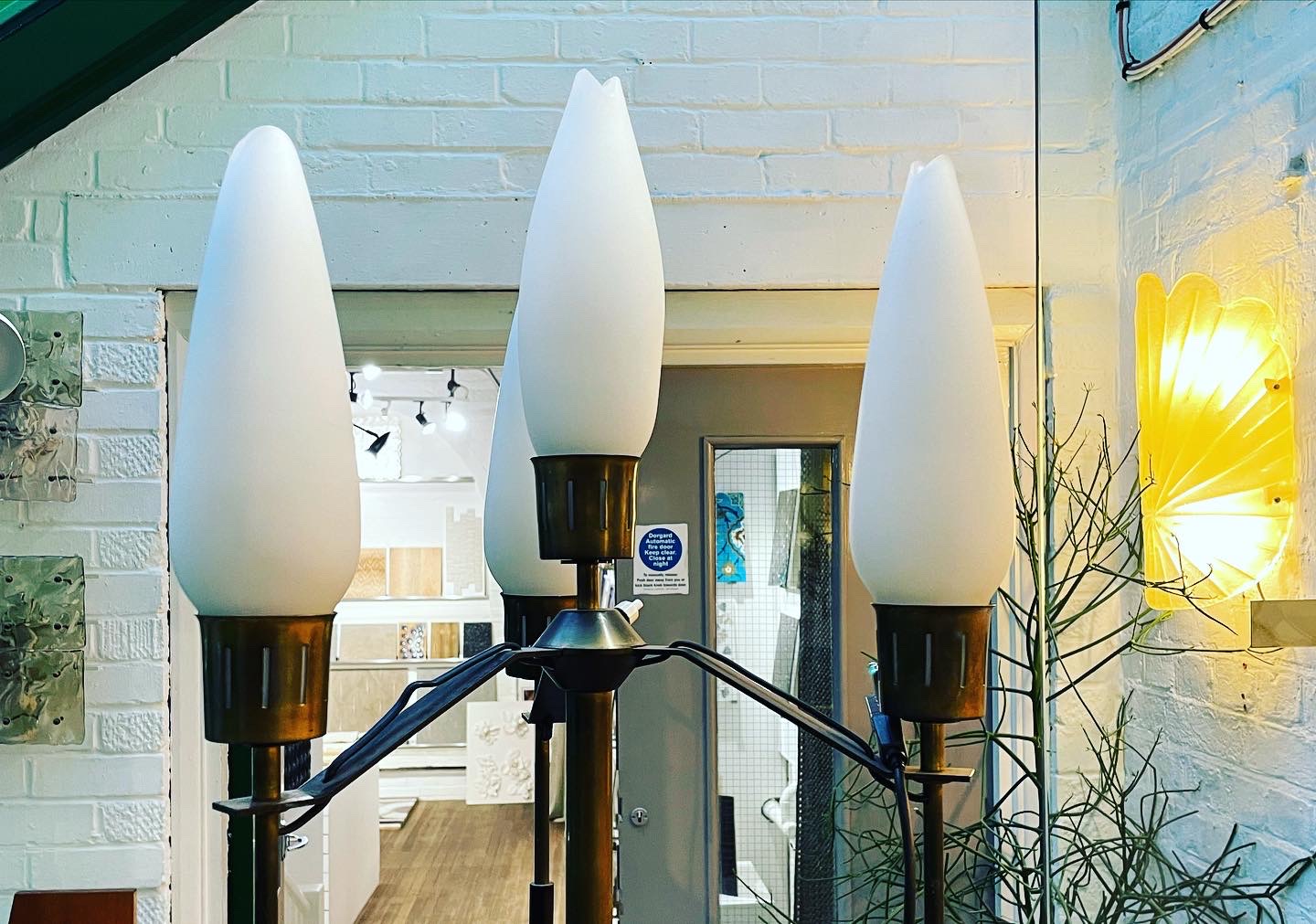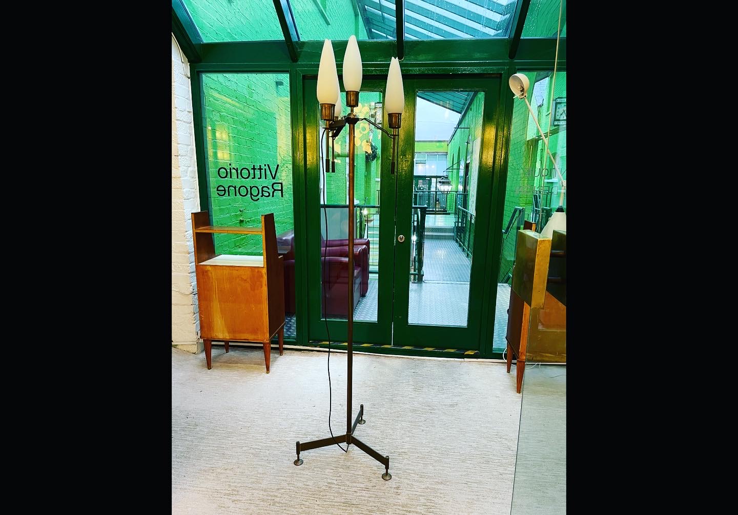 Italian 1950’s brass and glass floor lamp with 4 lights by Angelo Lelli.
