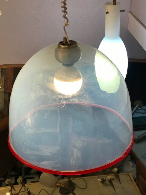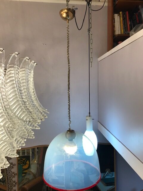 Italian good quality Murano Opaline glass pending light by Leucos.