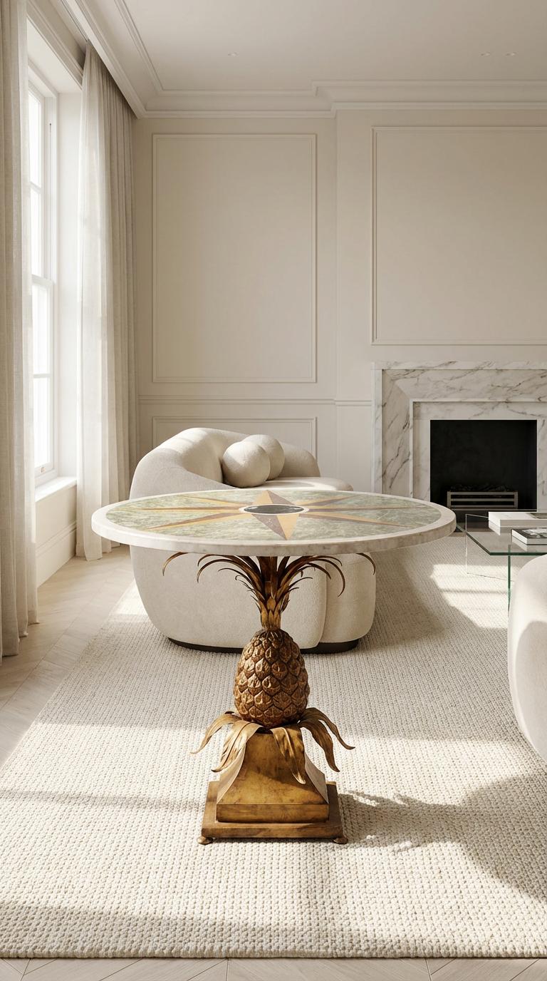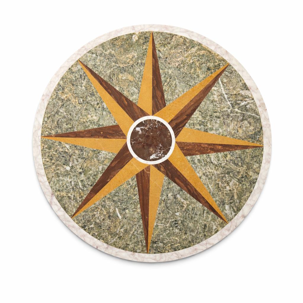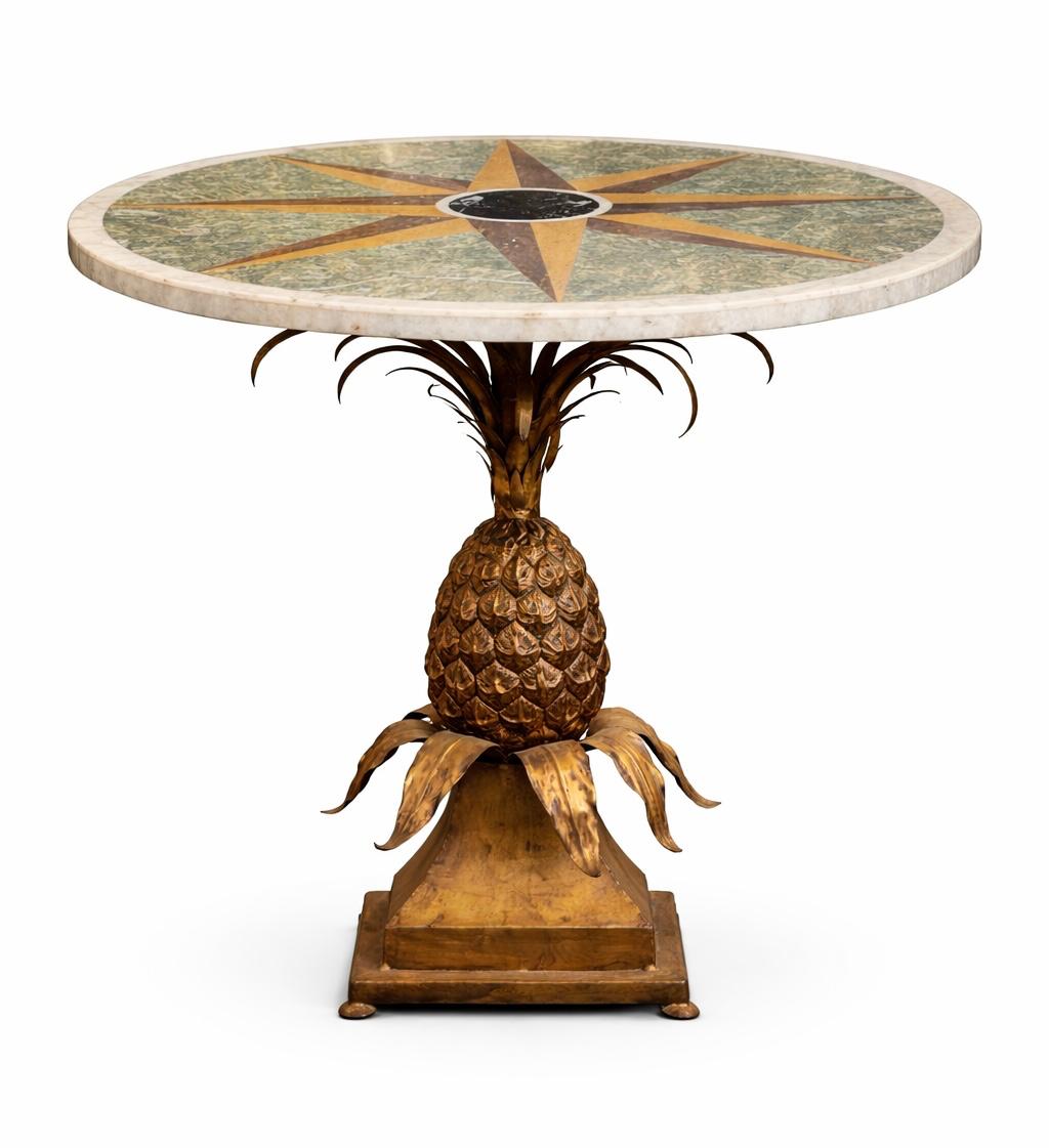 French 1945-50’s pedestal pineapple table with a wind rose marquetry top
