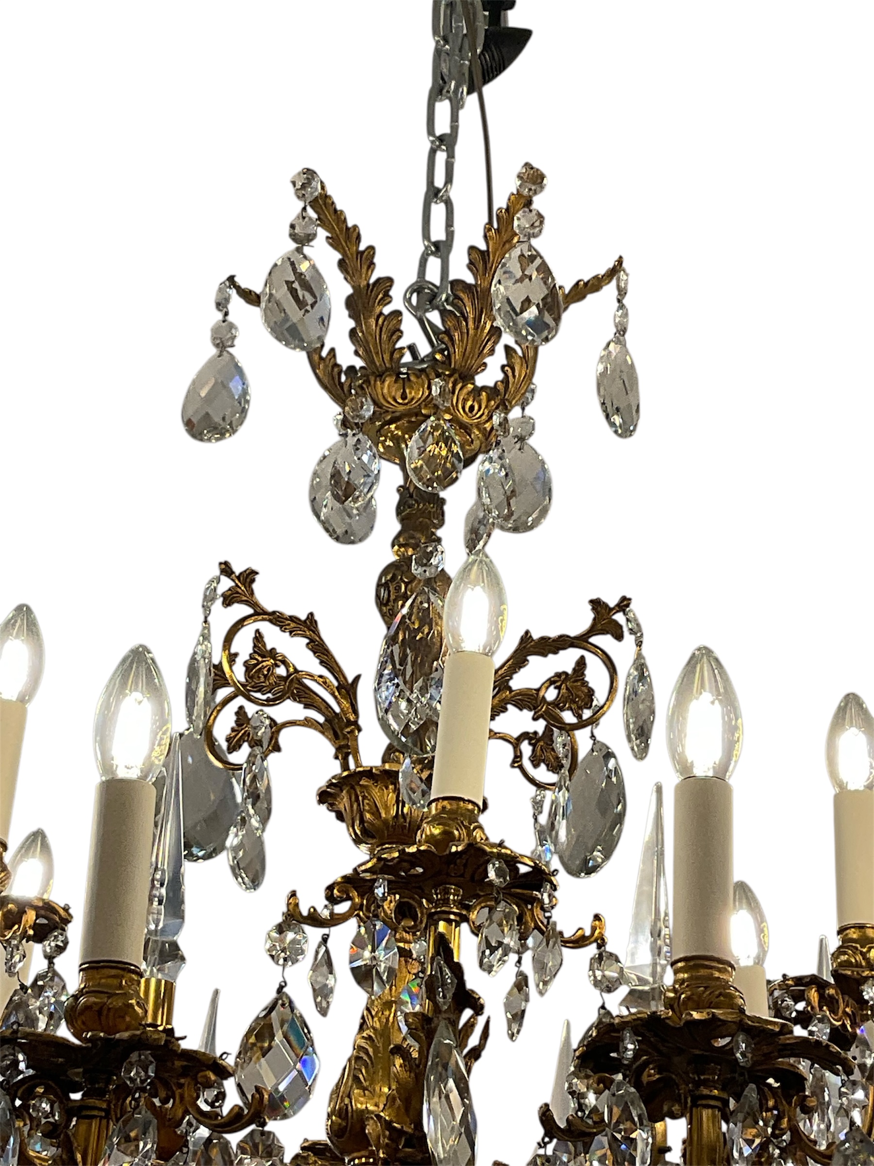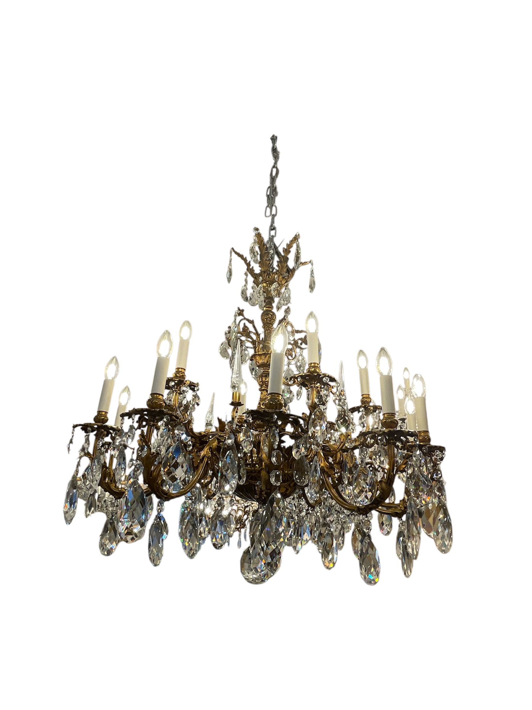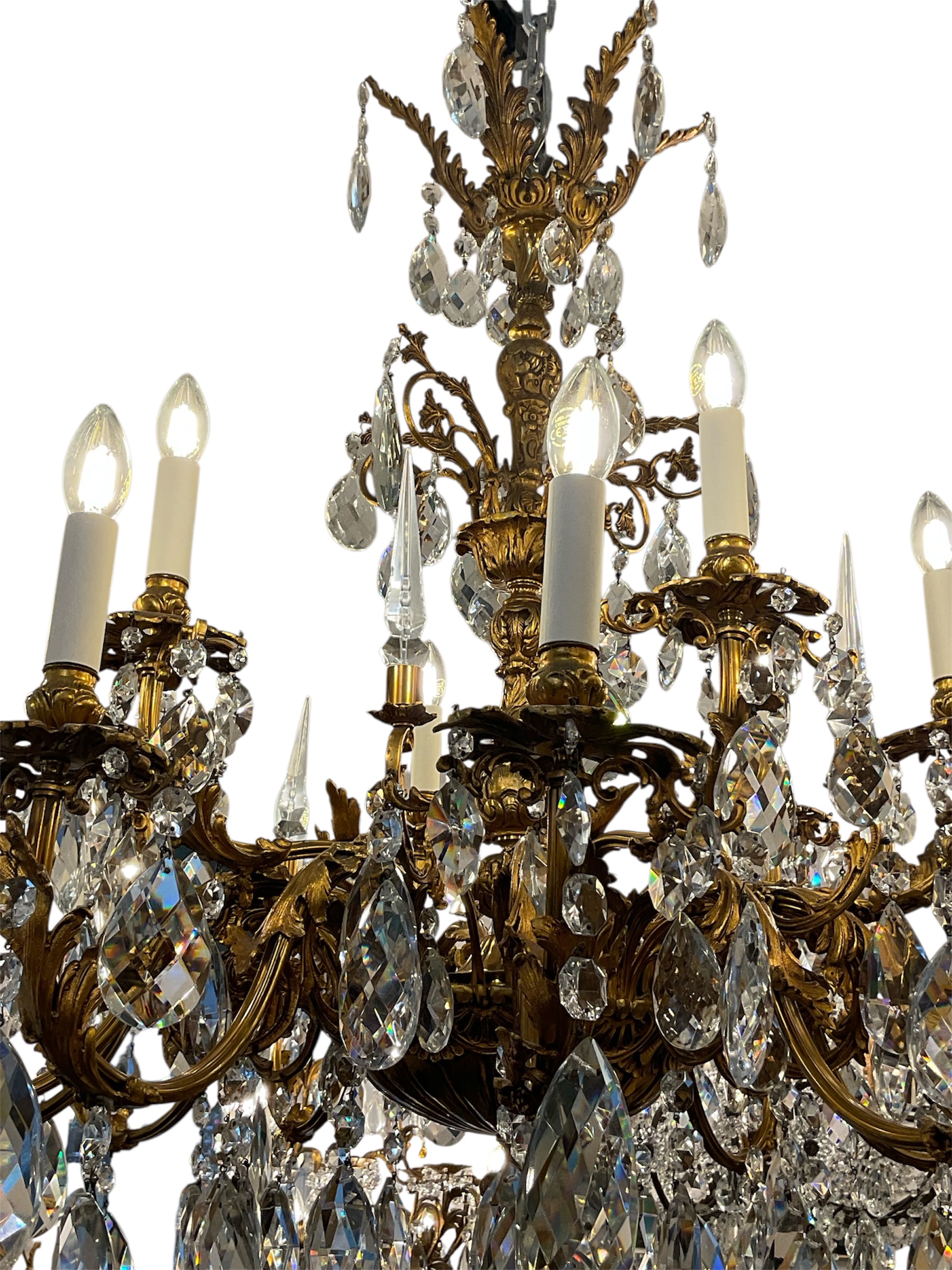 The chandelier exemplifies the “Gran Gout” of Parisian ateliers balancing architectural strength with ethereal brilliance of hight quality Crystal and