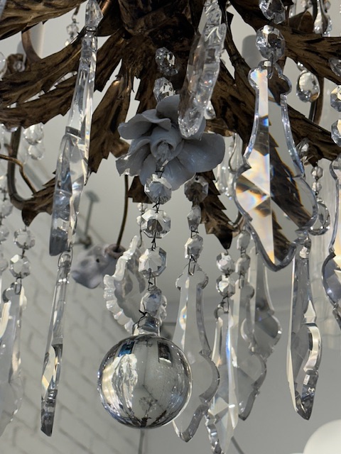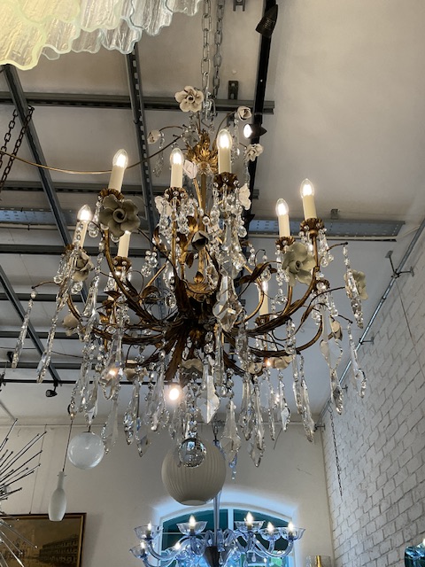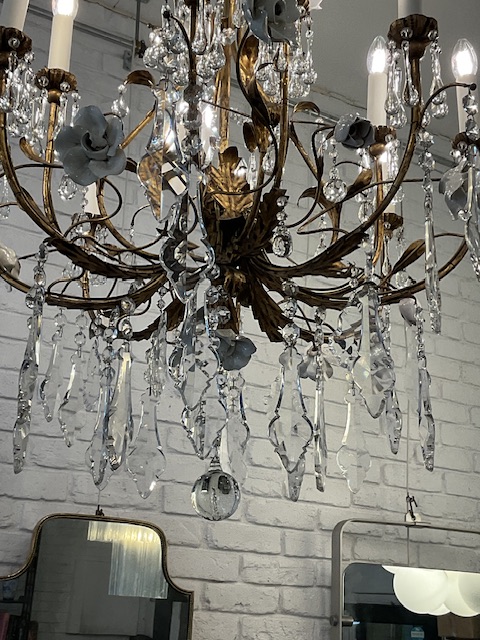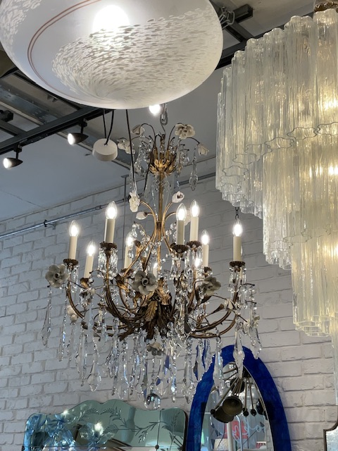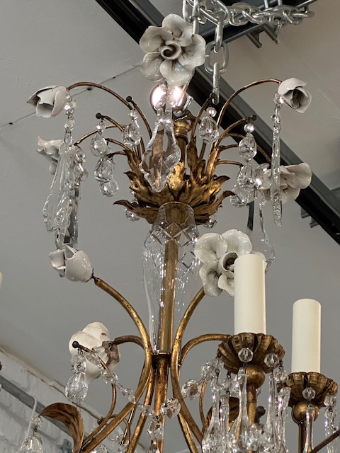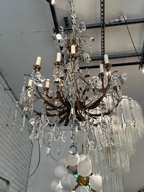 Italian 1930’s Crystal and white Capodimonte roses chandelier