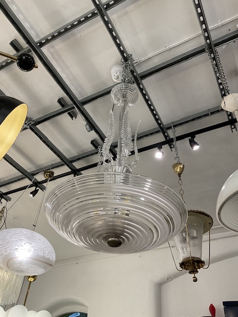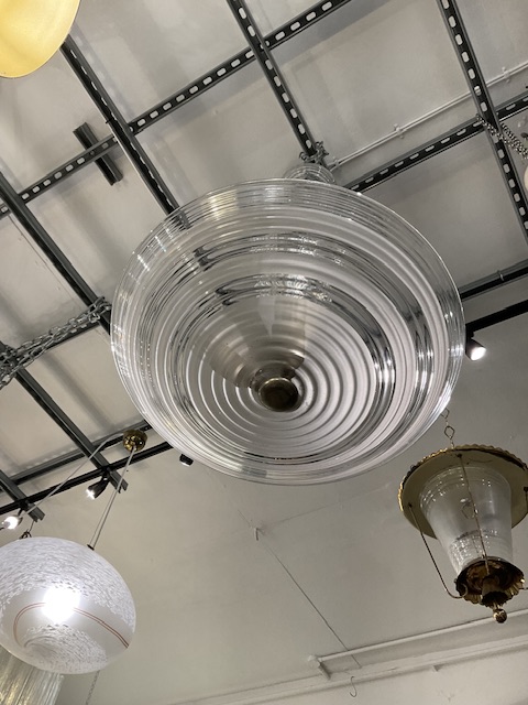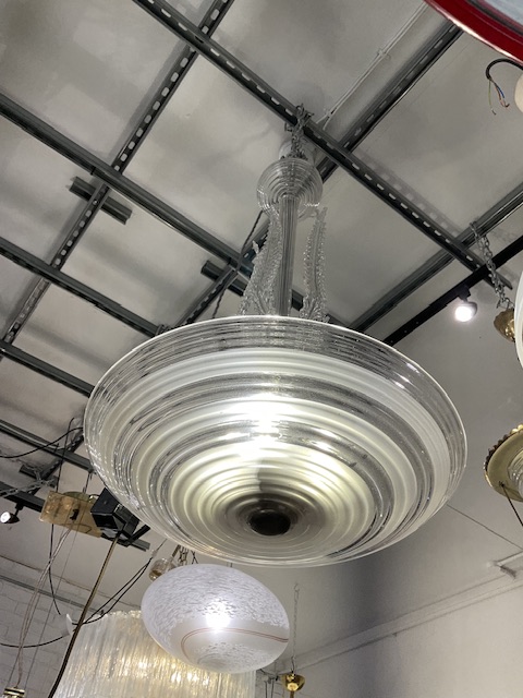 Italian set of four 1945-50’s pending lights Opal glass with Murrine attributed to Ercole Barovier