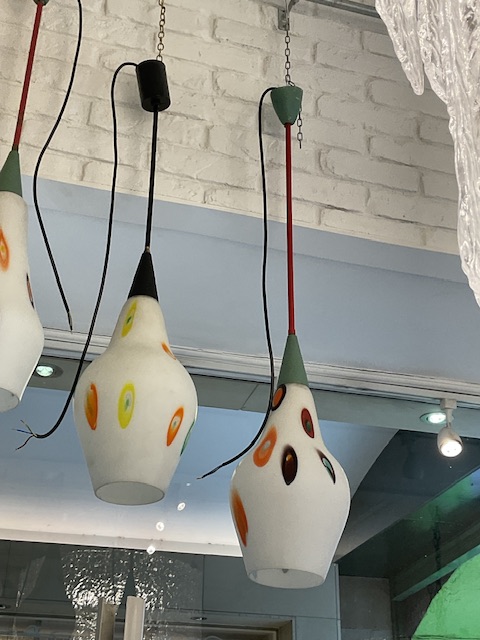 Italian st of four 1945-50’s pending lights open glass with Murrine attribute3d to Ercole Barovier