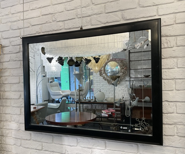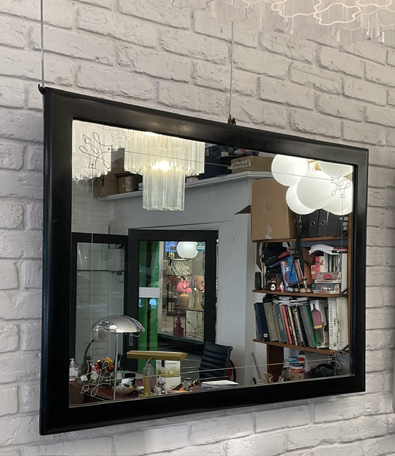Italian 1935-1940s mirror in a black wooden lacquer frame